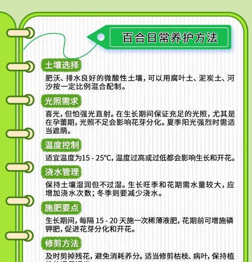 不同季节对于百合的生长有不同的影响,根据季节特点进行合理管理,可以使百合保持健康的生长状态。